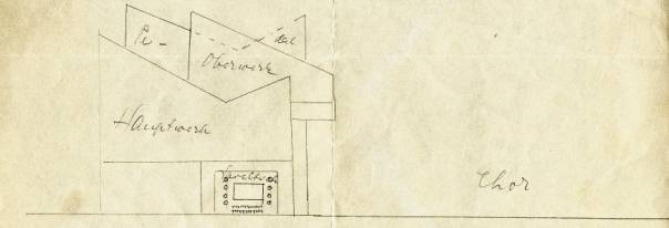 Abb. 3a-c: Erste Skizze von Architekt Himmelmann vom 17.02.1964, die als Antwort auf den Entwurf Beckers gedeutet werden kann. Himmelmann wünschte am liebsten einen Freipfeifenprospekt.